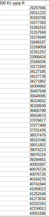 Zdravím , mám pořád se rozšiřující sbírku platných bankovek v hodnotě 500 Kč série R . Všechny bankovky jsou již použité . V příloze uvádím sériové čísla těchto bankovek . Můj záměr je časem předat vnučce (má 5 let ) . Protože předpokládám že ne všechny jsou nějak zajímavé , prosím o radu které má smysl dále uchovat a které vrátit do oběhu . Děkuji za Váš čas a radu