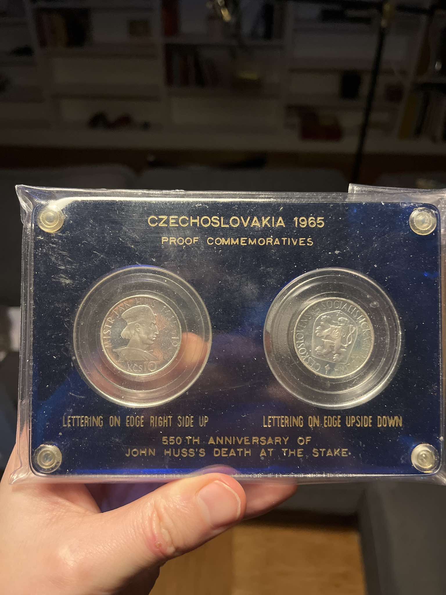 Zdravím a chtěl bych poprosit, zda by někdo neměl více informací k této “kazetě” s anglicky psaným textem a mincemi Jana Husa, rozměr 150x100mm. Kazeta uvádí kvalitu proof, ale nevím, jak to ověřit. Dala by se stanovit cena této kazety?